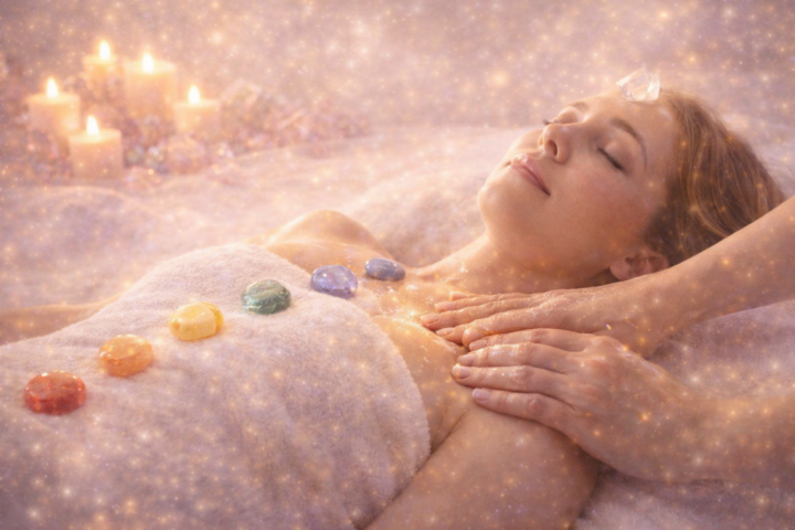 Ce soin d’harmonisation des chakras associe l’énergie des cristaux, le massage relaxant, les huiles essentielles, la musique méditative et le travail au pendule afin de rétablir une circulation énergétique fluide et profonde.